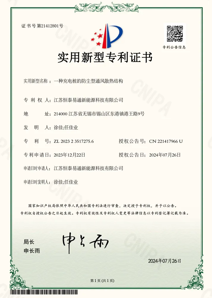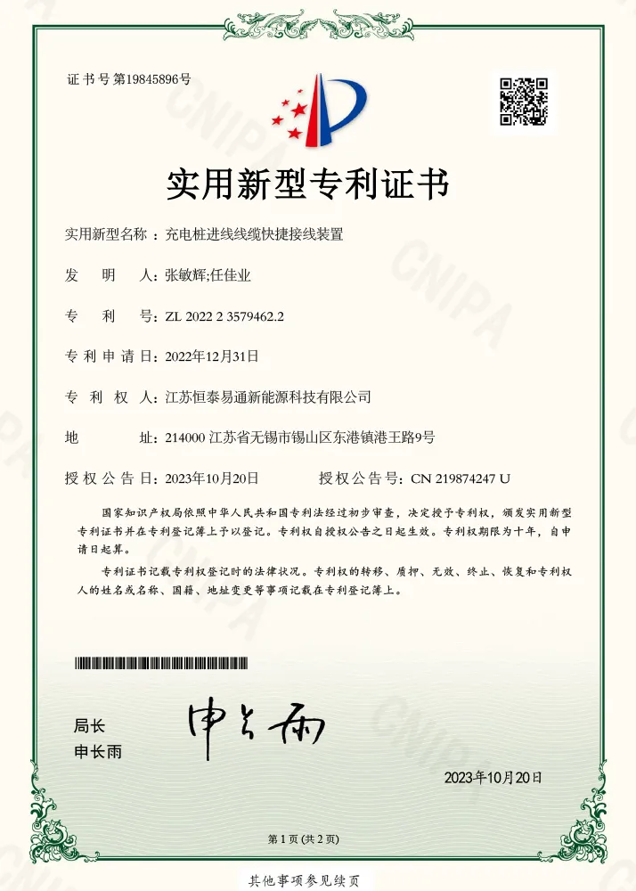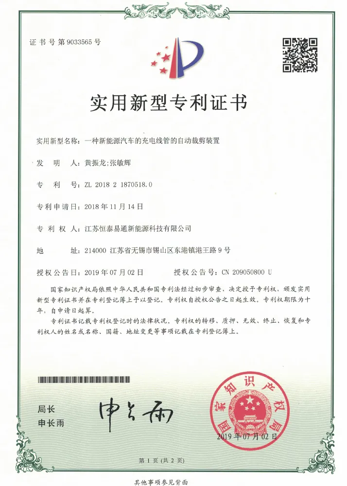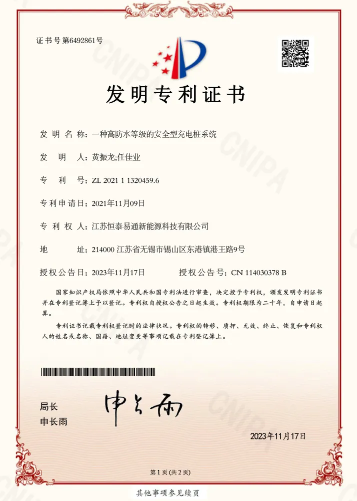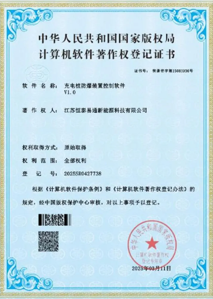 Соответствие нормам и гарантии: Как национальное высокотехнологичное предприятие, компания руководствуется ориентиром развития «специализация, совершенствование, уникальность, новаторство», в настоящее время обладает 55 патентами на полезные модели, 11 патентами на изобретения, 10 патентами на промышленные образцы, среди которых «зарядная станция с автоматическим пожаротушением многоточечных взрывозащищенных модулей» уже подана на международный патент, что укрепляет основу соответствия нормам за счет надежных технологий.
